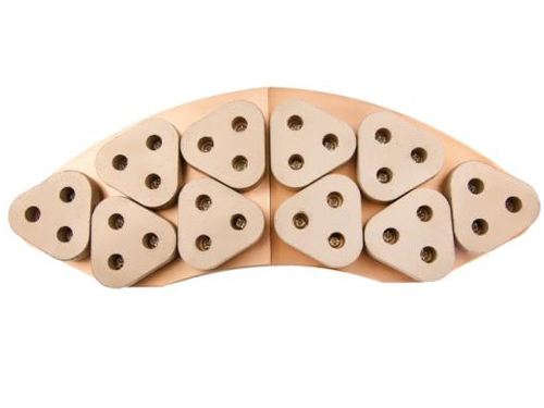 這里所說的三氧化二鋁就是電熔氧化鋁(白剛玉),氧化鋁經(jīng)過2000多度高溫冶煉,生產(chǎn)出來的白剛玉具有熔點高、硬度高、耐磨性能強、熱強度高、熱穩(wěn)定性強、化學穩(wěn)定性強不易受侵蝕等特點??梢允怪瞥傻暮铣刹牧祥l片提高熱穩(wěn)定性,分散熱量,增加復合材料的韌性,降低熱衰退率,提高合成材料的耐磨性能和承載壓力。