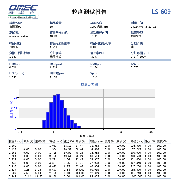海旭磨料白剛玉廠家的實測粒度結(jié)果如下: