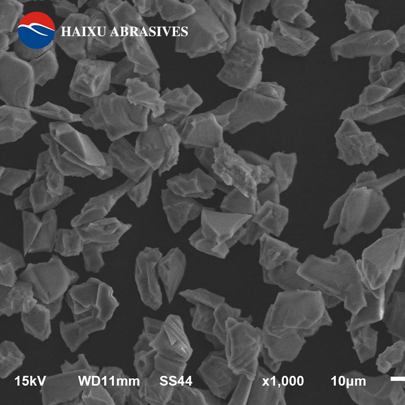微粉以白剛玉800目為例,D3小于31微米,D50值14微米正負1微米,D94不低于9微米。海旭磨料生產(chǎn)的白剛玉經(jīng)過化學處理和水力溢流沉淀分級,顆粒的均勻度更高。