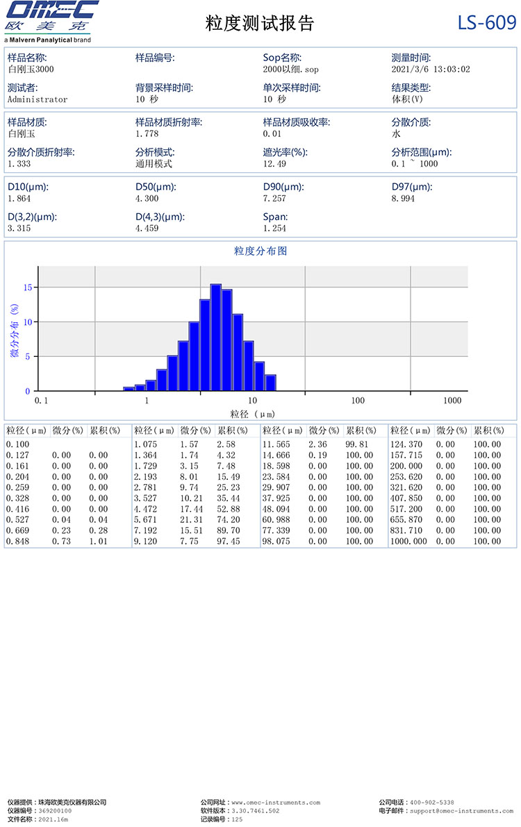 D0:≤ 13um,D3:≤ 11u,D50:4.0±0.5um,D94:≥ 2.0um |