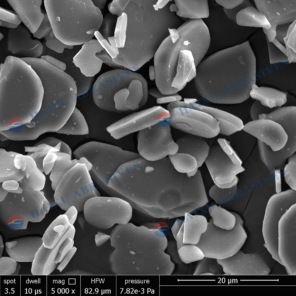 其晶體形狀為六角平板狀,區(qū)別于傳統(tǒng)磨料的等積型或球形,這種形狀使磨料顆粒在研磨運動中平行于被加工工件表面,產(chǎn)生滑動的研磨效果,而非傳統(tǒng)磨料的滾動研磨,因而不容易對工件表面產(chǎn)生隨機劃傷。同時,由于研磨壓力是均勻分布在平板狀磨粒表面,顆粒破碎減少,耐磨性大幅提高,因而能提供最佳的磨削效率和表面光潔度。實驗表明,平板狀氧化鋁微粉的研磨去除度可以提高10-20%,能夠?qū)崿F(xiàn)快速研磨和拋光。